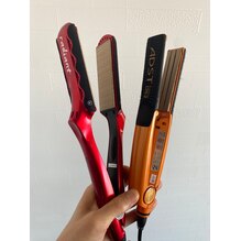 仕上げや縮毛矯正、髪質改などに使用されるストレートアイロンなのですが,当店では主に2種類のアイロンを用いて施術を行っています。